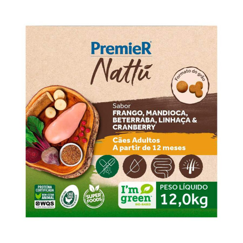 Premier Pet Nattu para Cães Adultos Sabor Mandioca 12kg