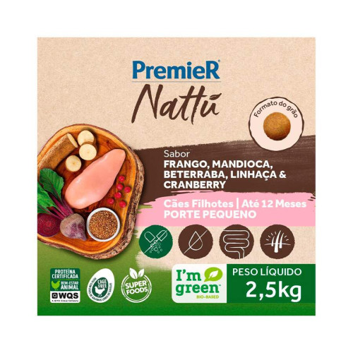 Premier Pet Nattu para Cães Filhotes de Raças Pequenas Sabor Mandioca 2,5kg