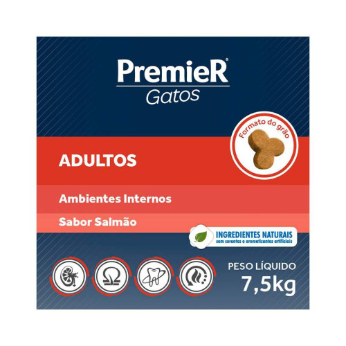 • Composição: Farinha de salmão, farinha de vísceras de frango, ovo desidratado, farelo de glúten de milho 60*, milho integral moído*, quirera de arroz, polpa de beterraba, gordura de frango, óleo de peixe, óleo de soja*, aditivo acidificante, antioxidantes BHA e BHT (0,012%), cloreto de potássio, cloreto de sódio, DL-metionina, extrato de yucca (0,06%), frutoligossacarídeos, hexametafosfato de sódio (0,1%), hidrolisado de frango, levedura seca de cervejaria, L-lisina, mananoligossacarídeos, parede celular de levedura, taurina, vitamina A, vitamina B12, vitamina C, vitamina D3, vitamina E, vitamina K3, ácido fólico, ácido pantotênico, biotina, cloreto de colina, niacina, piridoxina, riboflavina, tiamina, ferro aminoácido quelato, iodeto de potássio, manganês aminoácido quelato, proteinato de selênio, sulfato de cobre, sulfato de ferro, sulfato de zinco, zinco aminoácido quelato. * Contém milho, farelo de glúten de milho 60 e óleo de soja transgênicos (espécies doadoras de gene: Bacillus thuringiensis, Agrobacterium tumefaciens, Streptomyces viridochromogenes).